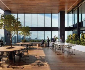 Located on the 26th and 35th floors, the Sky Terrace presents an inviting outdoor deck with built-in seating, tables, and chairs. Ideal for passive outdoor activities, it extends from the building’s indoor spaces, creating a seamless blend of relaxation and leisure in a sophisticated, open-air setting.